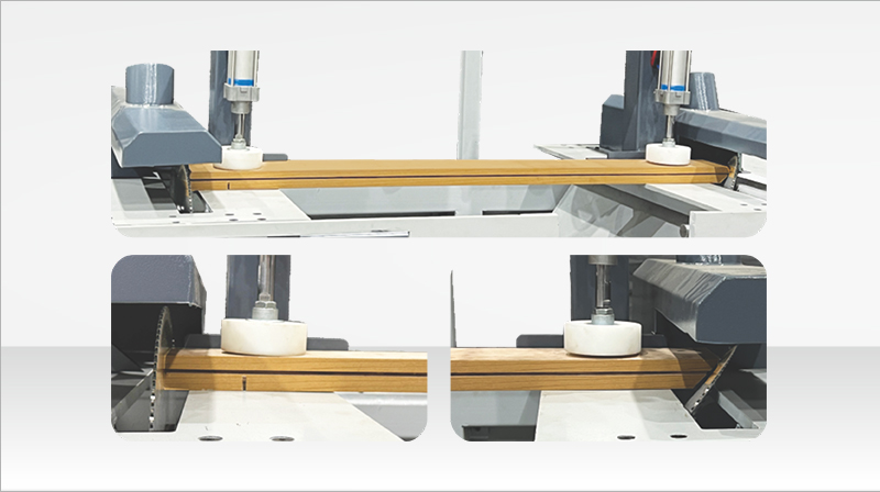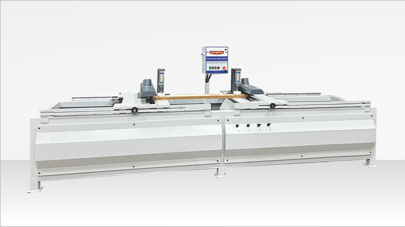 This machine appears to a double-head mitre cutting mainly in engineer door WPC f PVC profile cutting,